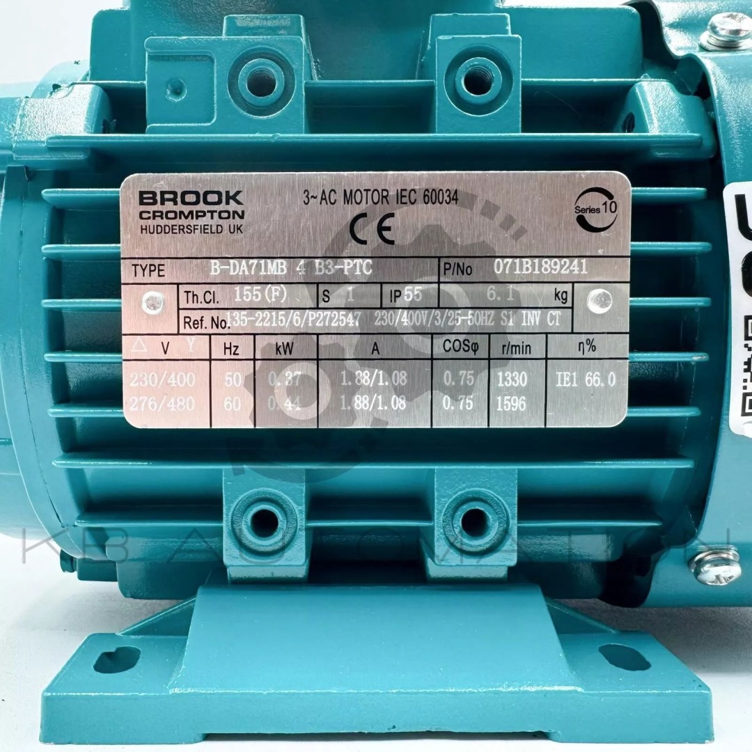 230/400V/3/25-50HZ S1 INV CT | Output: 0.37kW, 4-pole; Speed: 1330 rpm; Volts: 230/400, 3-phase, 50Hz; Mounting: B3