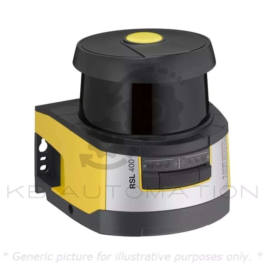 RSL 400 Series Safety laser scanner; Operating range (protective field data): 0 ... 8.25 m; Operating range (warning field data): 0 ... 20 m; Resolution (adjustable): 30/40/50/60/70/150 mm; Number of independent sensor configurations: up to 10; Object size: 150 mm x 150 mm