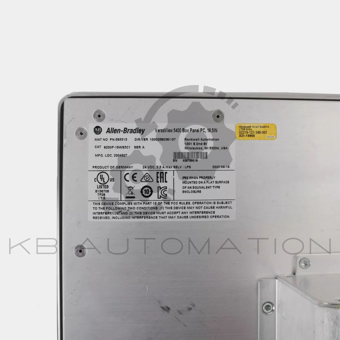 VersaView 5400 Panel PC industrial computer, 18.5-inch widescreen display, projected capacitive multi-touch screen, 128GB SSD, dual-port Ethernet, Windows 10 IoT Enterprise (64-bit), single display output, no pre-installed software, 24V DC supply