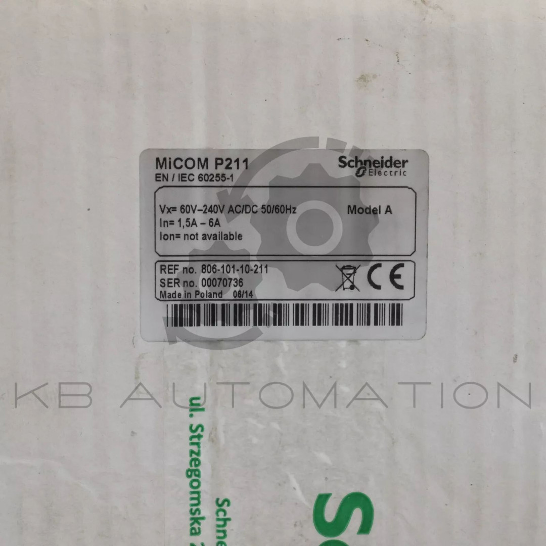 Easergy MiCOM P211 Relay designed for motor supervision, protection and control applications, easily adaptable and equipped with MODBUS RTU protocol; Vx= 60V-240V AC/DC 50/60Hz; In=1.5A-6A; Ion= not aplicable