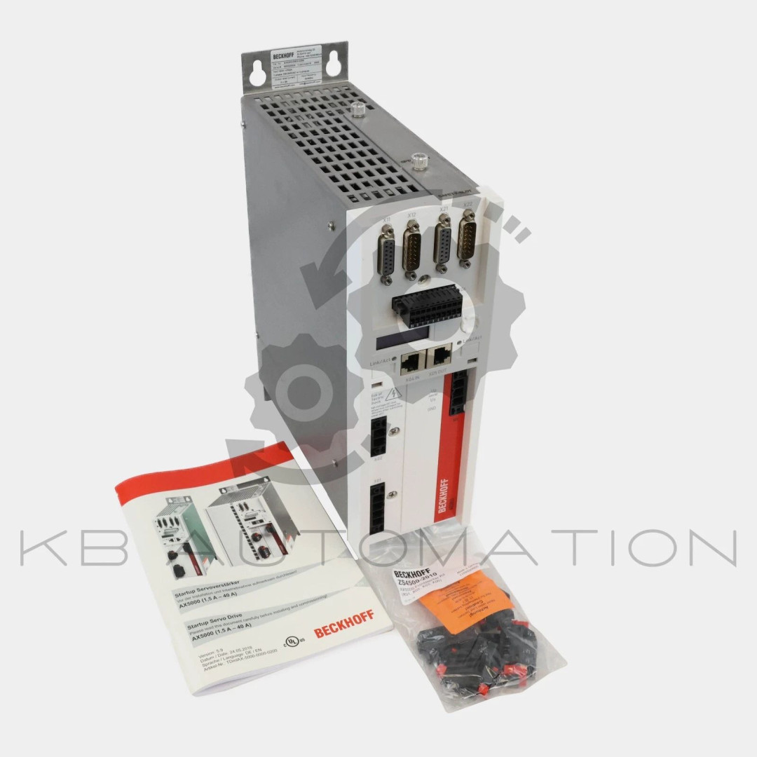 AX5000 Series Digital Compact Servo Drive; 2-axis module; Rated supply voltage: 3 x 100…480 V AC ±10%; DC link voltage: max. 875 V DC; Rated output current (per axis): 3.0 A; Peak output current (per axis): 10.0 A; EtherCAT interface; Feedback: SinCos 1 Vpp, resolver, EnDat 2.1, Hiperface, BiSS B, OCT