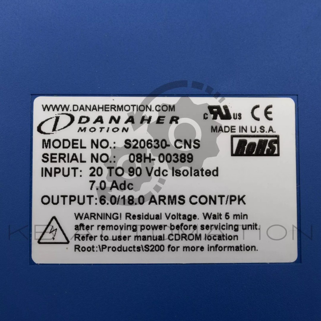 S200 Servo drive; Rated supply voltage: 20...90 VDC; Rated output current (± 3%): 6.0 Arms; Peak output current (± 3%): 18.0 A; Velocity loop Bandwidth max.: 800 kHz