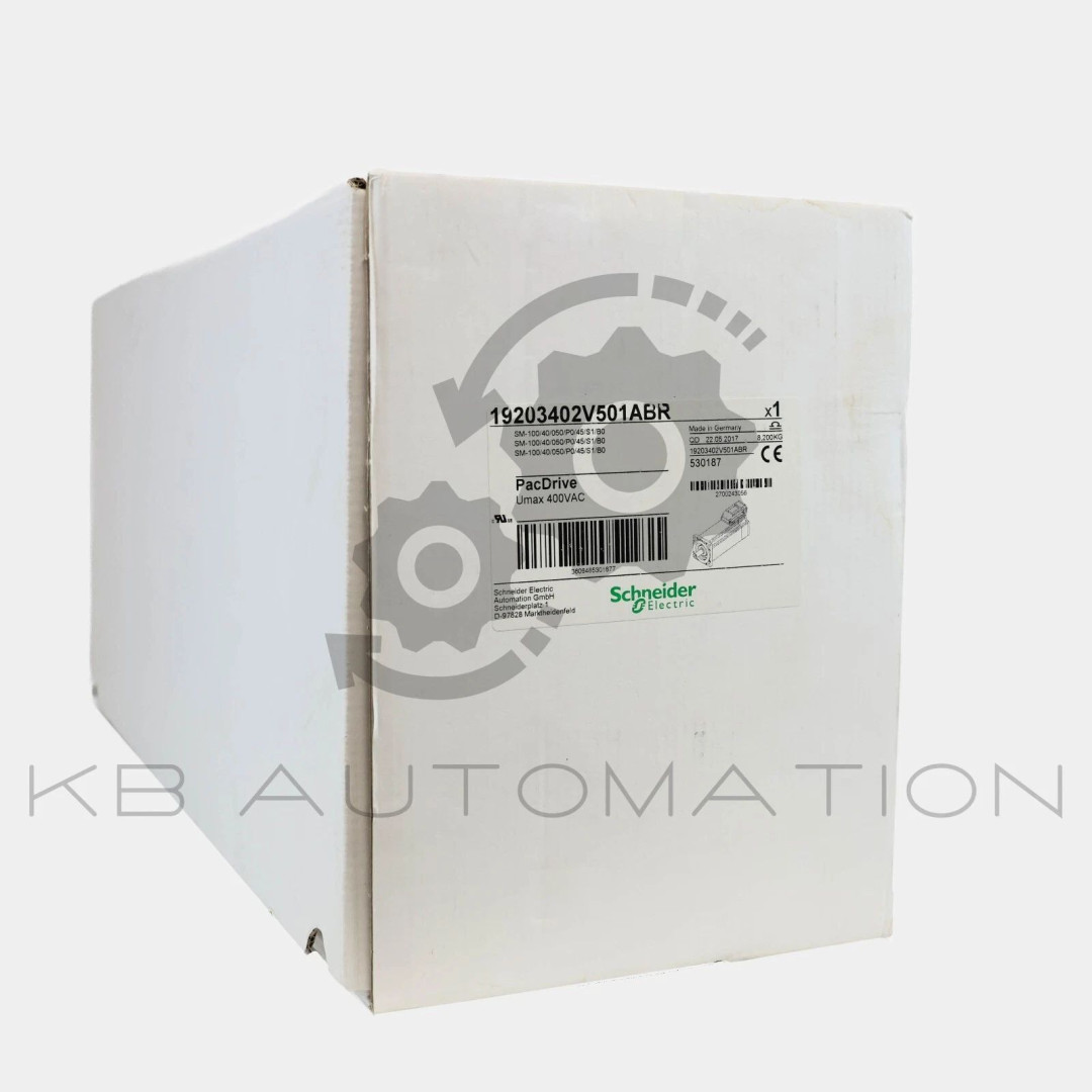 Elau SM-100/40/050/P0/45/S1/B0 PacDrive SM Series servo motor without holding brake; Frame size=100 mm, Un=400 V, M0=4.8 Nm, I0=4.19 Arms, Ism=14.0 Arms, PN=1.42 kW, nN=4000 rpm; Thermo: PTC; Single-turn encoder; IP65 | Art-Nr. 19203402V501ABR